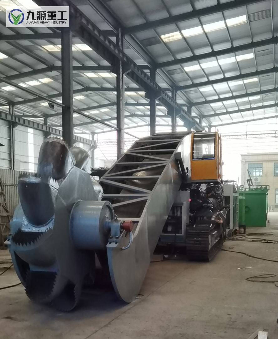 斗輪取料機,是指一種用于大型干散貨堆場的既能堆料又能取料的連續輸送的高效裝卸機械。由可俯仰和水平擺動的膠帶輸送臂及其前端的斗輪、機架、運行機構組成,膠帶可雙向運行,取料時由斗輪取料經輸送臂送出,堆料時則由主輸送機運來的貨物經由輸送臂投向堆場。