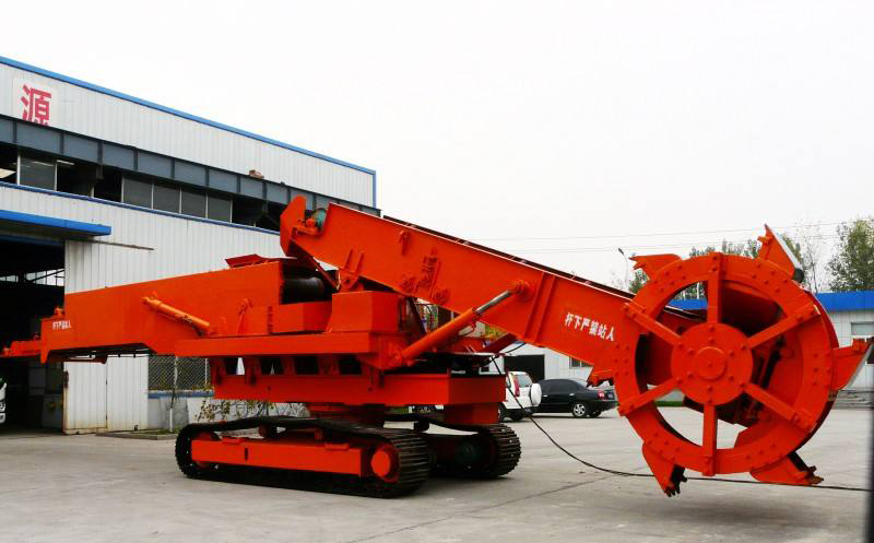斗輪取料機,是指一種用于大型干散貨堆場的既能堆料又能取料的連續輸送的高效裝卸機械。由可俯仰和水平擺動的膠帶輸送臂及其前端的斗輪、機架、運行機構組成,膠帶可雙向運行,取料時由斗輪取料經輸送臂送出,堆料時則由主輸送機運來的貨物經由輸送臂投向堆場。