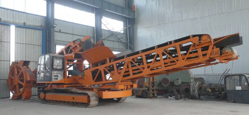 斗輪取料機(jī),是指一種用于大型干散貨堆場的既能堆料又能取料的連續(xù)輸送的高效裝卸機(jī)械。由可俯仰和水平擺動的膠帶輸送臂及其前端的斗輪、機(jī)架、運(yùn)行機(jī)構(gòu)組成,膠帶可雙向運(yùn)行,取料時由斗輪取料經(jīng)輸送臂送出,堆料時則由主輸送機(jī)運(yùn)來的貨物經(jīng)由輸送臂投向堆場。